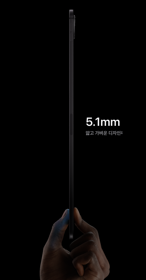 특히 5.1mm라는 역대 가장 얇은 Apple 제품으로 아마도 아이패드의 그립감이 아이폰보다 훨씬 뛰어나지 않을까 예상해봅니다.